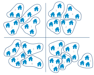 Hierbei wird das Betreuungsgebiet in verschiedene Kreise eingeteilt. Die Routenplanung erfolgt dann innerhalb dieser Kreise. Auch hier sollen die gefahrenen Kilometer reduziert werden, da nur Kunden oder Interessenten aus einem Kreis oder aus benachbarten Kreisen besucht werden.